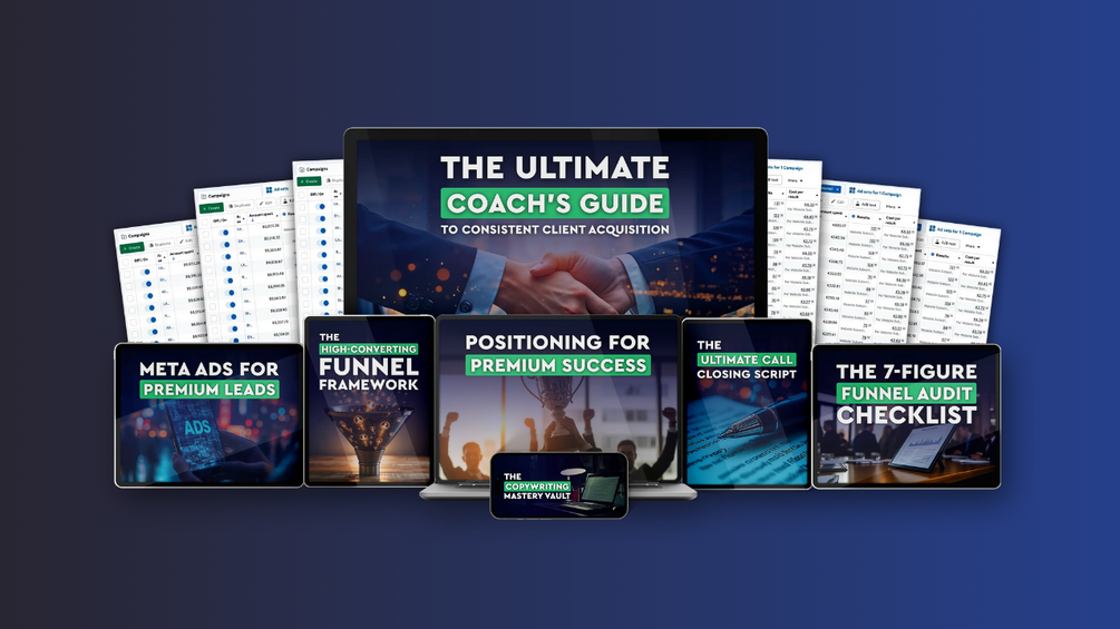 Everything you need to consistently attract $3K+ coaching clients — with battle-tested funnels, ad strategies, and plug-and-play templates.